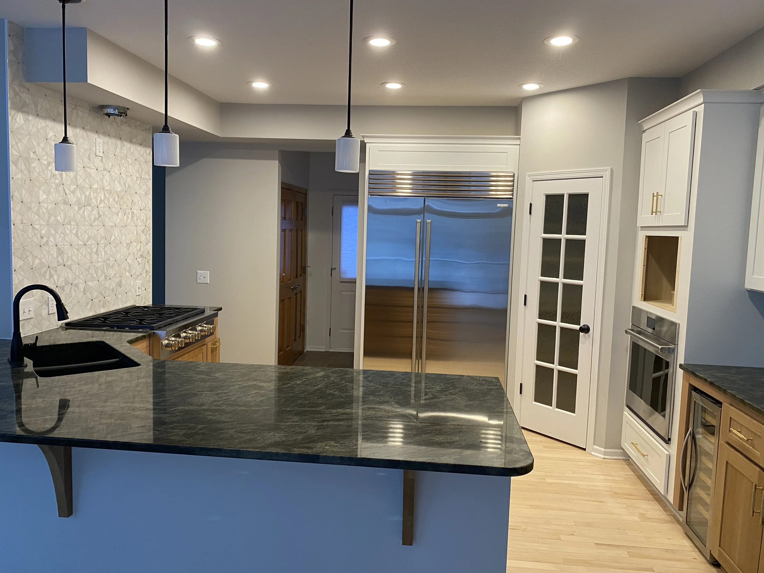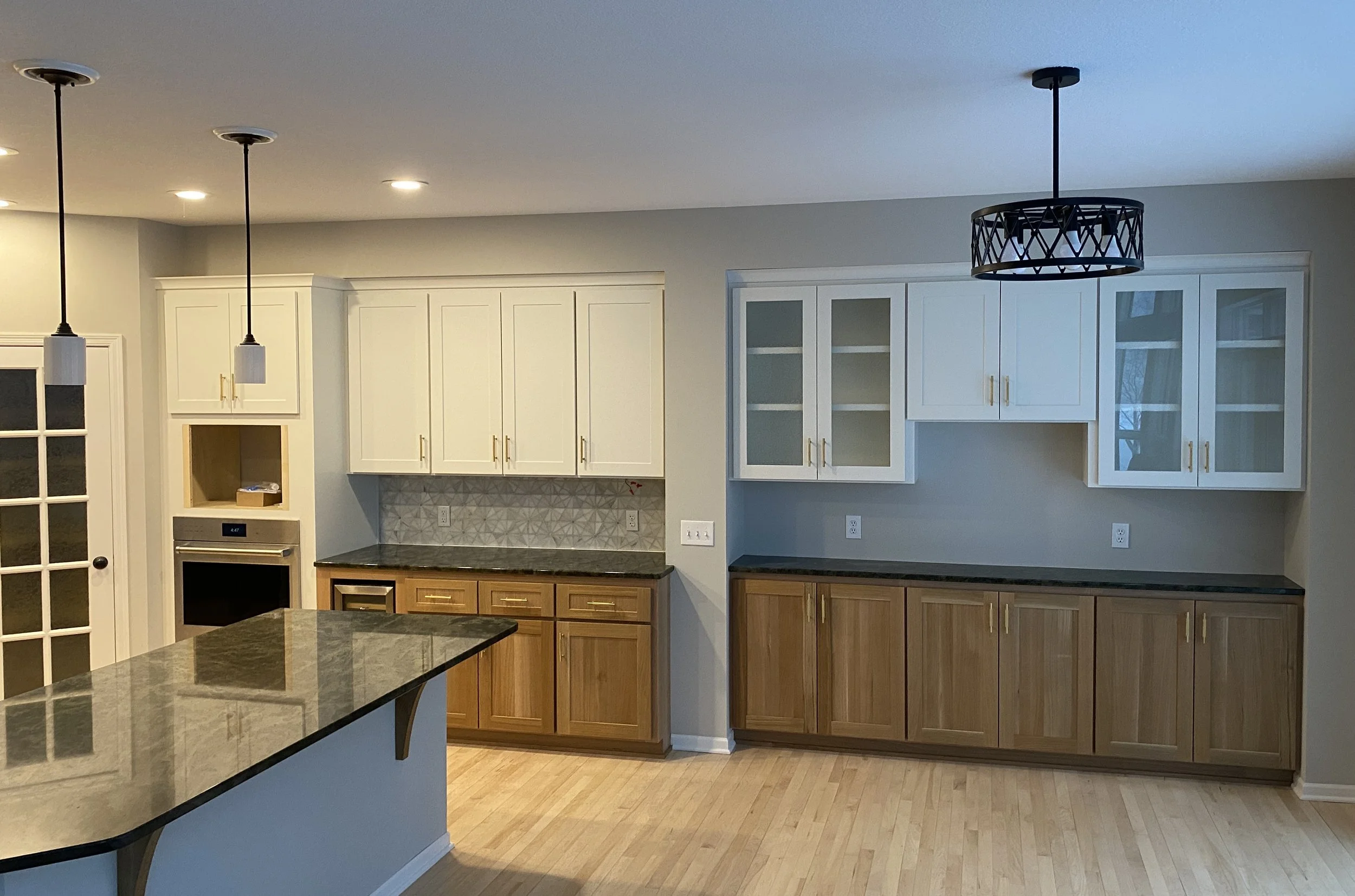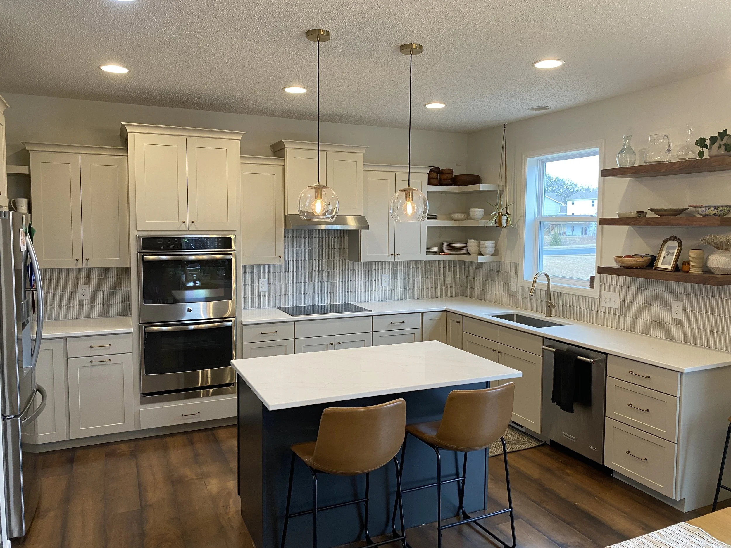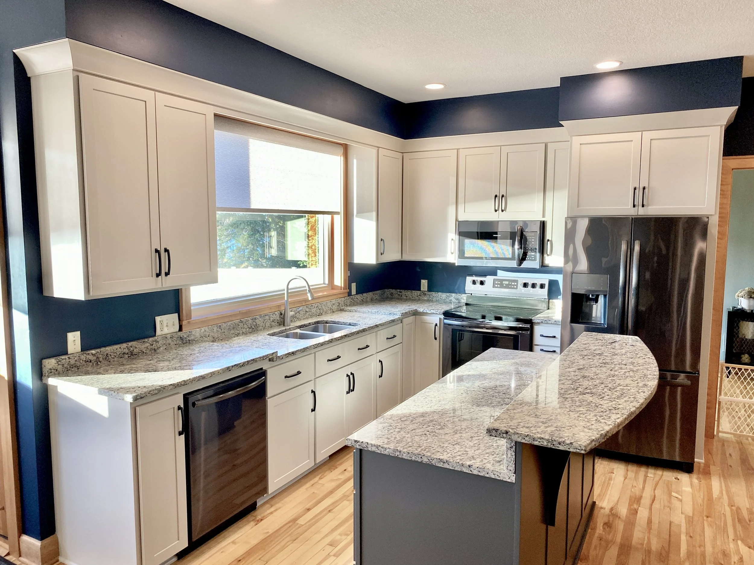 The kitchens below highlight the variety of options you have when it comes to refacing. We order all of our products through Showplace Wood Products, a high quality semi-custom cabinetry shop based in South Dakota. Customers have numerous options when it comes to door styles, paint color, and natural wood stains. Below are just a few of our offerings, but know that there are many more options to choose from. You can browse Showplace Wood Products for your options, or schedule an in-home consultation where we bring door samples for you to peruse.